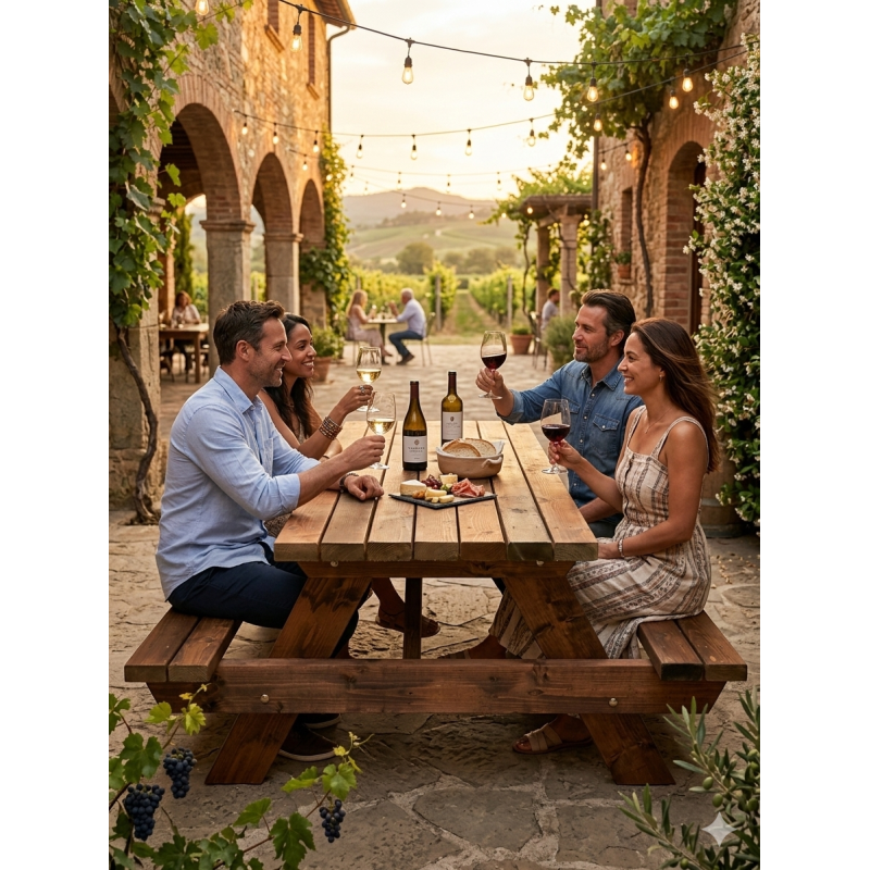 Whether it’s a morning coffee in the sun or a chilled Saturday afternoon with friends, our 6-seater picnic bench is the gold standard for outdoor living. It offers that iconic pub aesthetic with a refined, high-quality finish that looks just as good in a manicured garden as it does on a patio.